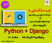 شرکت کنندگان عزیز پس از شرکت در این وبینار و آشنایی کلی با مباحث برنامه نویسی با پایتون میتوانند در دوره حضوری و منحصر به فرد بسته ویژه توسعه برنامه های تحت وب با پایتون (پایتون کاربردی + فریم ورک جنگو) که در خرداد سال 97 برگزار خواهد شد ، شرکت نموده و از تخفیف 10 درصدی ویژه شرکت کنندگان این وبینار استفاده نمایند.